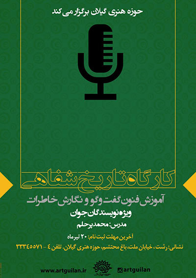 پرحلم گفت: برای ثبت و ضبط خاطرات و مستندسازی رویدادها باید همواره آموزش نسل جوان را مد نظر قرار داد. در همین راستا دومین کارگاه تاریخ شفاهی برای تربیت نسل جوان و به کارگیری آنها در پروژههای مختلف تاریخ شفاهی و خاطرهنگاری از سوی حوزه هنری گیلان برگزار میشود.