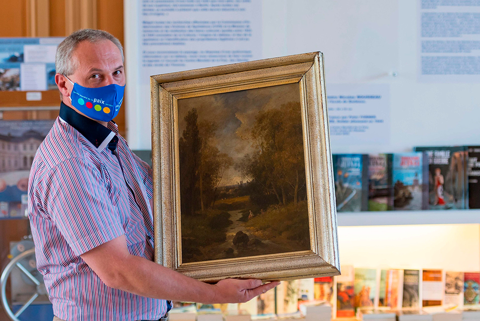 "فیلیپ هانس" مدیر مرکز صلح جهانی، یک تابلوی نقاشیِ رنگ و روغن از "نیکولاس روسو" nicolas rousseau نقاشِ فرانسوی را در دست دارد. این تابلو که در جنگ جهانی دوم توسط سربازان آلمانی به سرقت رفته بود، پس از 76 سال توسط "فیلیپ هانس" به موطن اصلی اش بازگردانده شد. آقای "هانس" شخصا از فرانسه تا آلمان رانندگی کرده است تا تابلو را به مکان واقعی اش برگرداند.