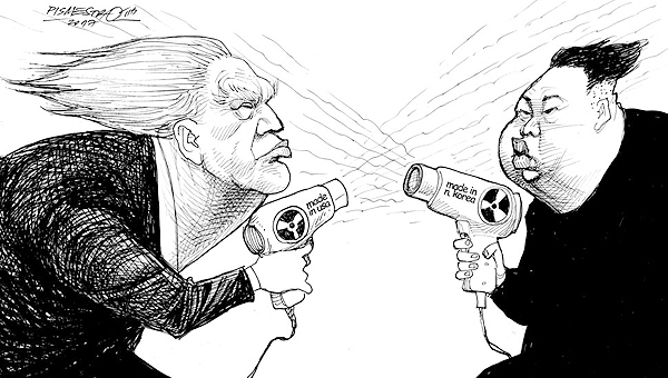 کاریکاتوریست مشهور «پتار پیسمستروویک» کارتونی از جدال لفظی آمریکا و کره شمالی منتشر کرده و آن را «بلوف» نامیده است.