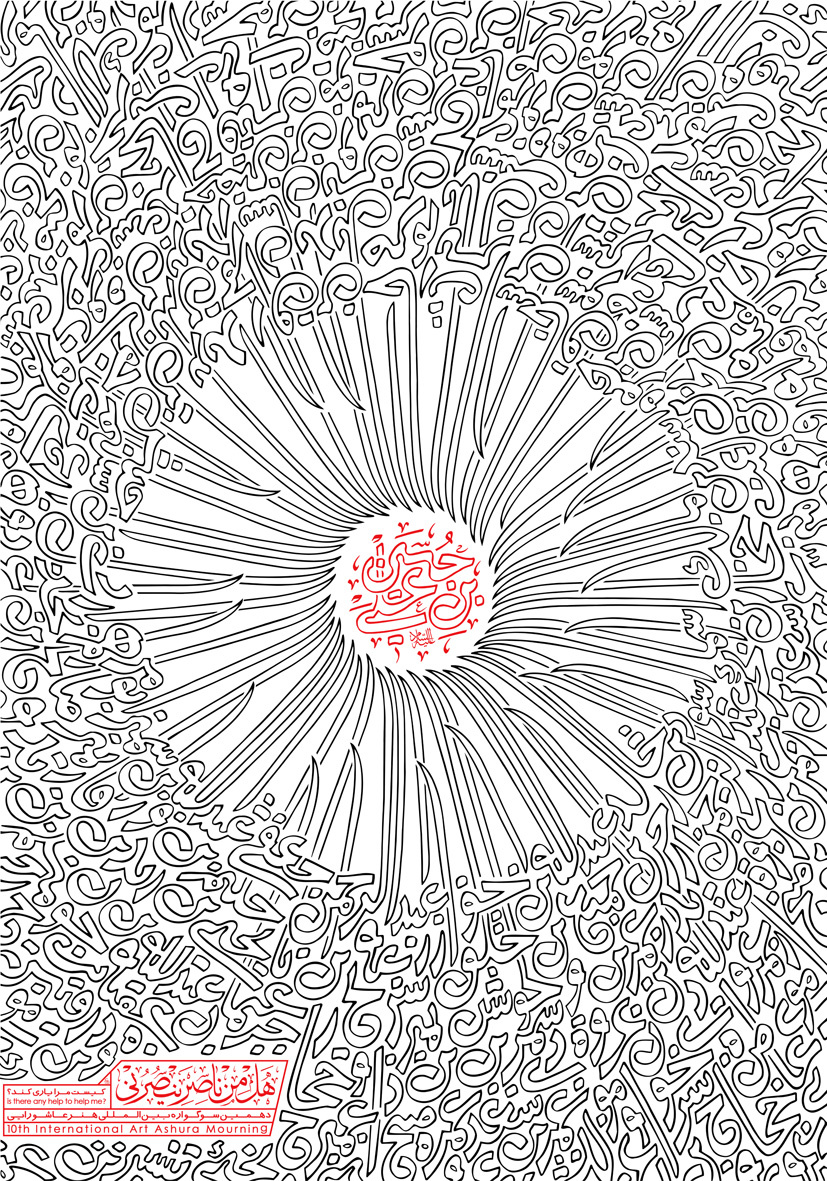 او در ادامه به چگونگی ایدهپردازی خلق این اثر پرداخت و گفت: بر اساس مطالعات و شنیدهها از حادثه کربلا و قیام امام حسین (ع)، روایتی را در تخیل خود داشتم و این مهم در کنار علاقهای که به آثار تایپوگرافی و طراحی خط دارم، سبب شد تا در صدد مطالعات گسترده برآیم تا از تکرار پرهیز کنم. در اجرای این اثر، سعی کردهام با در نظر گرفتن محتوای موضوع عاشورا و جنبه زیباییشناسی در اثر هنری، حروف و کلماتی را طراحی کنم و با ایجاد فرم و ریتمی که در اثر مشاهده میشود، مفاهیم مظلومیت، غربت، حصر، هجوم و بی یار و یاور ماندن امام حسین (ع) را نشان دهم. همچنین استفاده از دو رنگ سیاه و قرمز در پسزمینه سفید برای تاثیرگذاری بیشتر و بیان بهتر و ساده تر موضوع در انتقال پیام بهره جستم .