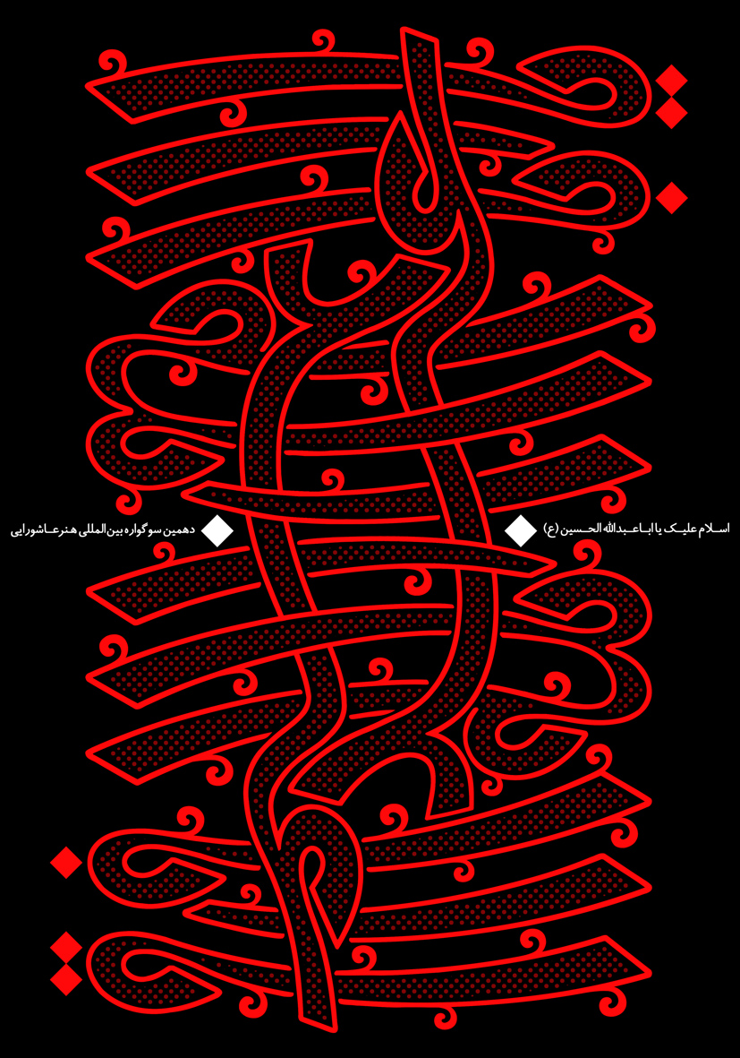 این هنرمند با اشاره به آنکه اثری که از او در دهمین سوگواره بینالمللی هنر عاشورایی در رشته پوستر مورد تقدیر قرار گرفت، یک اثر تایپوگرافی (طراحی خط) است در این خصوص گفت: حروف و نوشتههایی که در این اثر مشاهده میشود اسامی تعدادی از قاتلان و دشمنان حضرت اباعبدالله (ع) و شهداء کربلا است. البته مخاطب بیشتر از اینکه باید سعی در خواندن این اسامی داشته باشد، نوع خط، او را به یک ارتباط دیداری میکشاند.