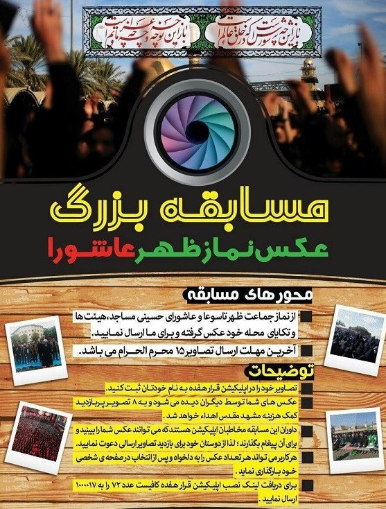 به گزارش مرکز تجسمی حوزه هنری به نقل از باشگاه خبرنگاران پویا ستاد اقامه نماز کشور مسابقه بزرگ عکس را با محوریت «نماز ظهر عاشورا» با موضوع تصویربرداری از «نماز جماعت ظهر تاسوعا و عاشورای حسینی مساجد، هیئتها و تکایال محله» برگزار میکند.