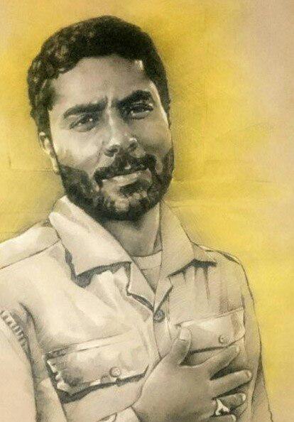 محمد علی نادری هنرمند جوان برازجانی یکی از منتخبین جشنواره هنر مقاومت است که چندی پیش شاهد رونمایی از اثر نقاشی او با موضوع شهید محسن حججی بودیم. او این روزها با رونمایی از دومین اثر خود، چهره اولین شهید حرم بوشهری با نام «شهید محمد احمدی جوان» را تصویر کرده است.