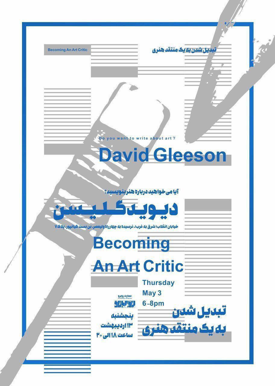 دیوید گلیسن، نویسنده، نمایشگاه گردان و منتقد فعال لندن نشست «تبدیل شدن به یک منتقد هنری» برگزار میکند.