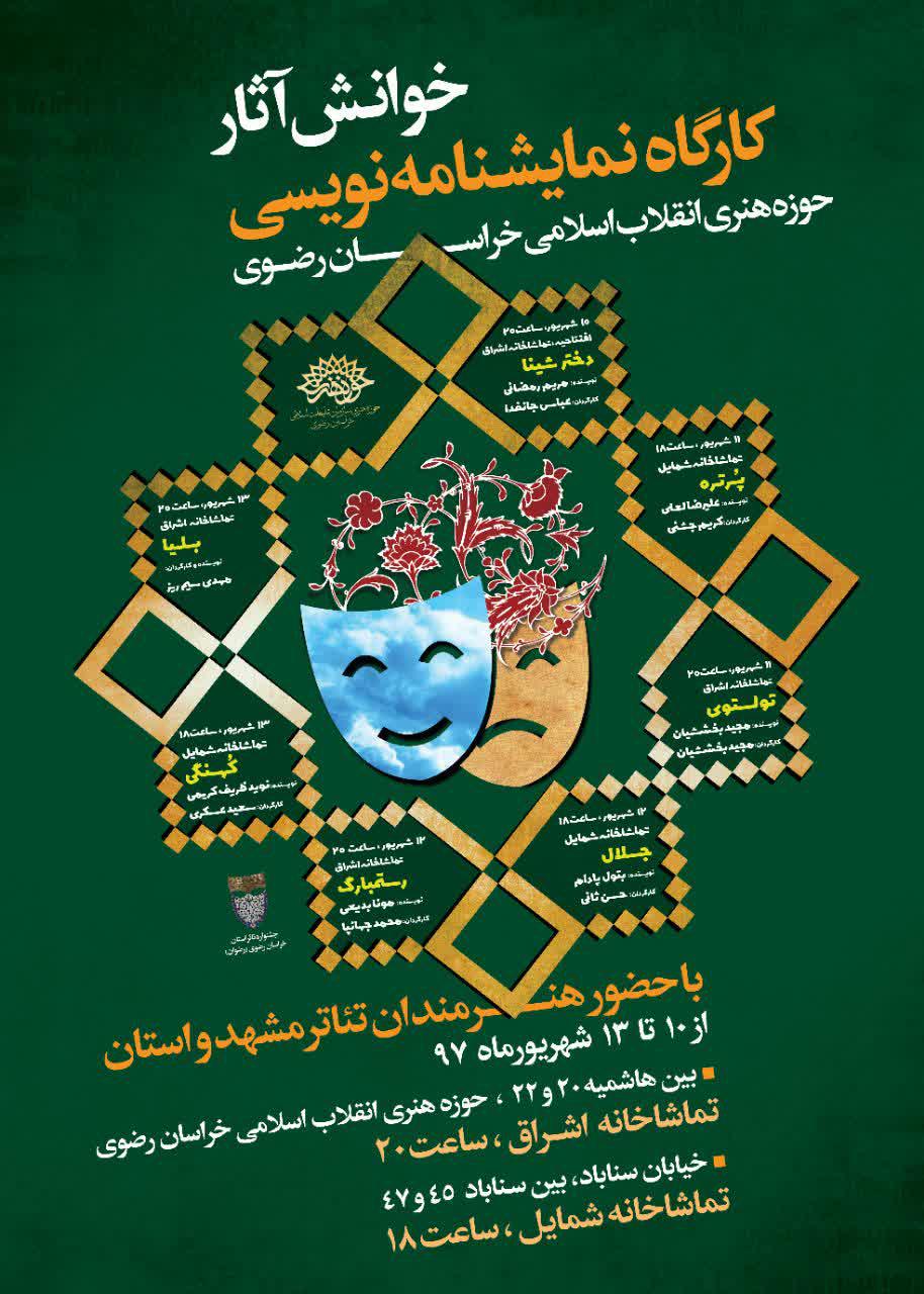 نمایشنامههای دختر شینا به نویسندگی مریم رمضانی و کارگردانی عباس جانفدا، تولستوی به نویسندگی و کارگردانی مجید بخششیان، پرتره به نویسندگی علیرضا لعلی و کارگردانی کریم جشنی، کهنگی به نویسندگی نوید ظریف کریمی و کارگردانی سعید عسگری، جلال به نویسندگی بتول پادام و کارگردانی حسن ثانی، رستمبارک به نویسندگی مونا بدیعی و کارگردانی محمد جهانپا و بلیا به نویسندگی و کارگردانی مهدی سیمریز، از ۱۰ تا ۱۳ شهریور ماه خوانش شد که داوری این نمایشنامهخوانیها را محمدجواد استادی، حسنچودن و حسین انصاری از هنرمندان مطرح استان، بر عهده داشتند.