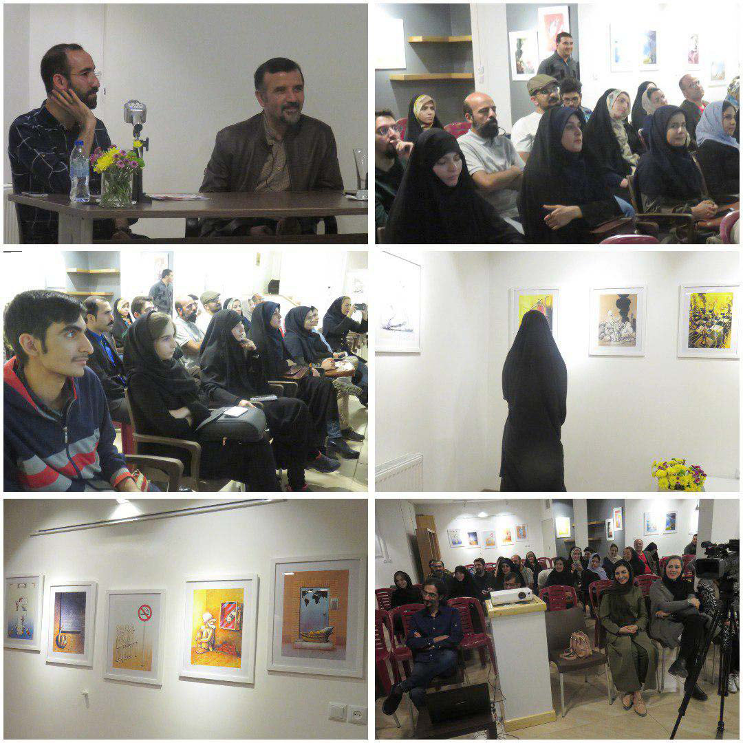 وی در پاسخ به سوالات حضار گفت که چگونه در آثارش به یک فرم گرافیکی یکنواخت رسیده است و در خصوص روند ایده یابی در آثارش نکاتی را ارائه داد.