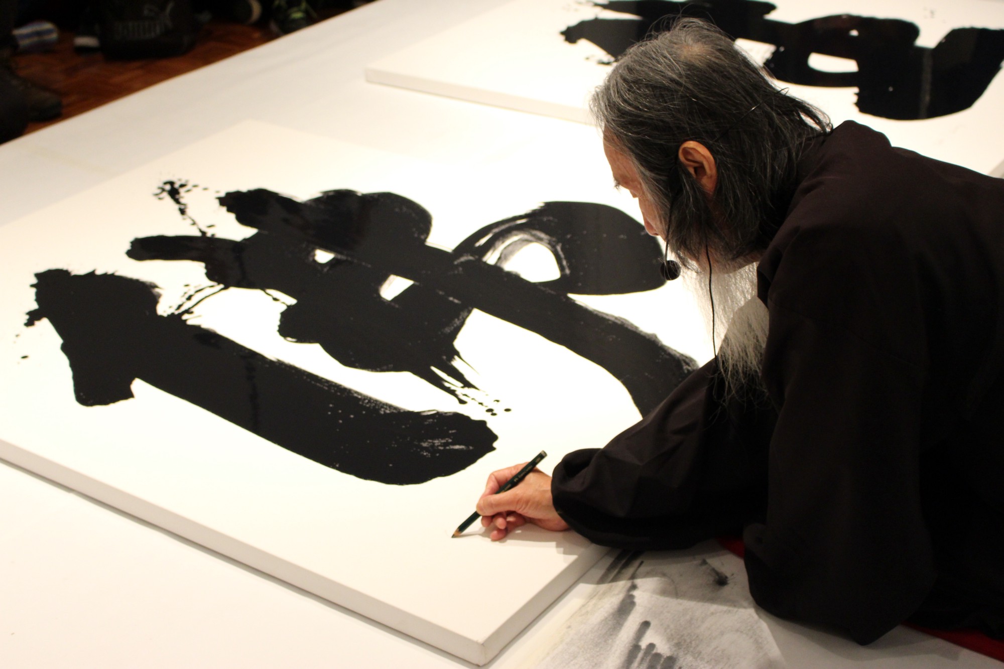 کازوآکی تاناهاشی در حال آموزش خوشنویسی